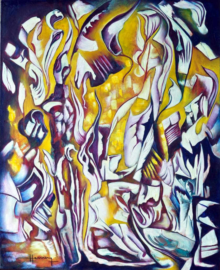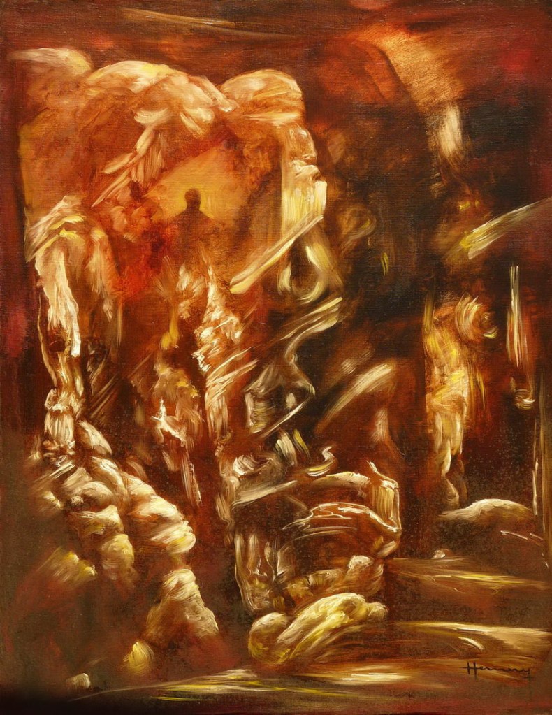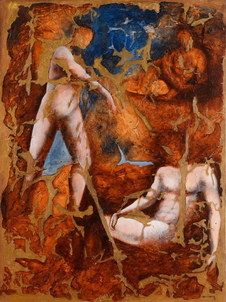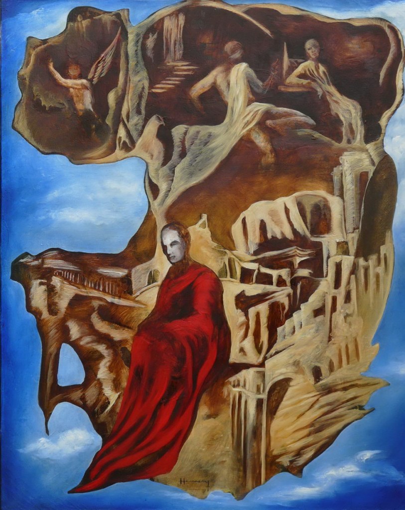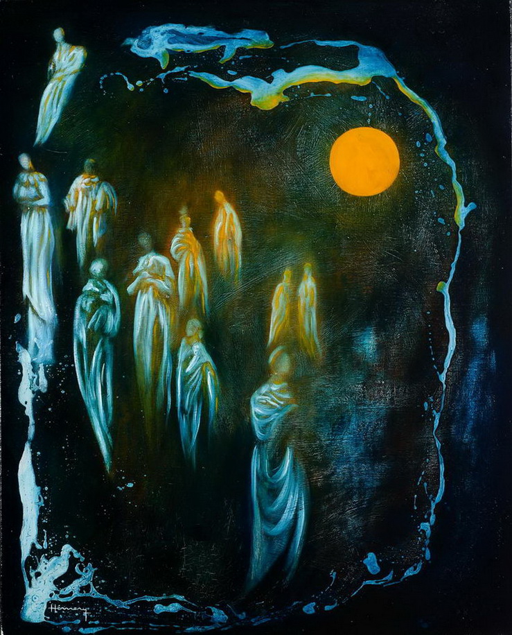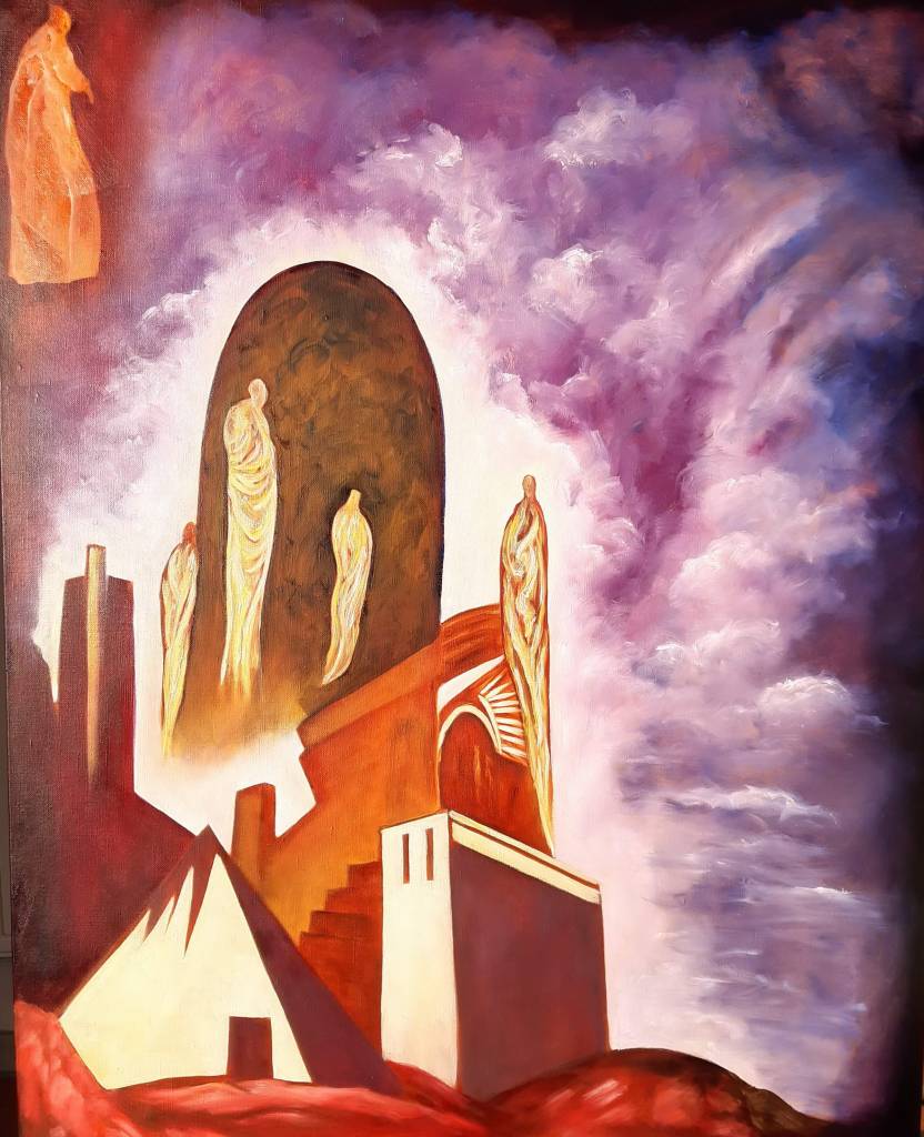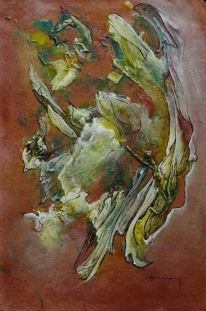 In a new impulse the artist starts representing a Pantheist visionary world opening our senses and our consciousness to the perception that « We are One with all the living creatures »