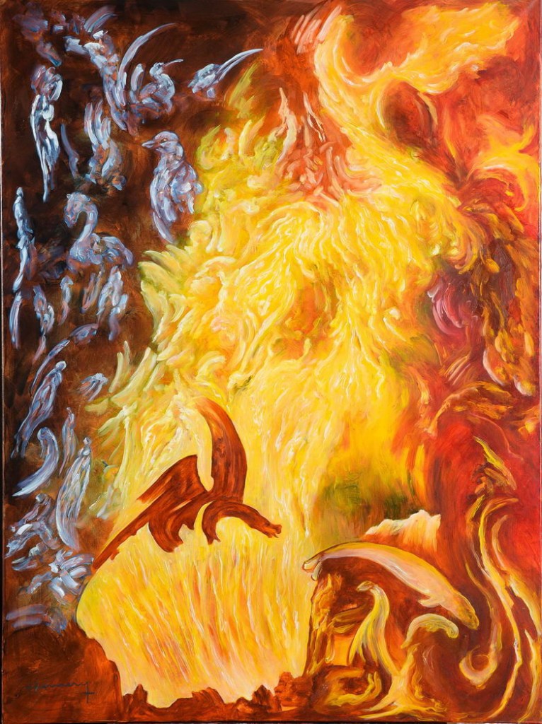 Depuis, l’artiste est engagée dans la préparation d’une importante série de livres dans lesquels elle accompagne son écriture inspirée d’illustrations flamboyantes, dans la ligne de ses précédents ouvrages « les Chants du Destin » et les « Chants du Temps »